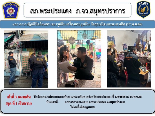 ปิดล้อมตรวจค้นอาวุธปืน เครื่องกระสุน วัตถุระเบิด และยาเสพติด