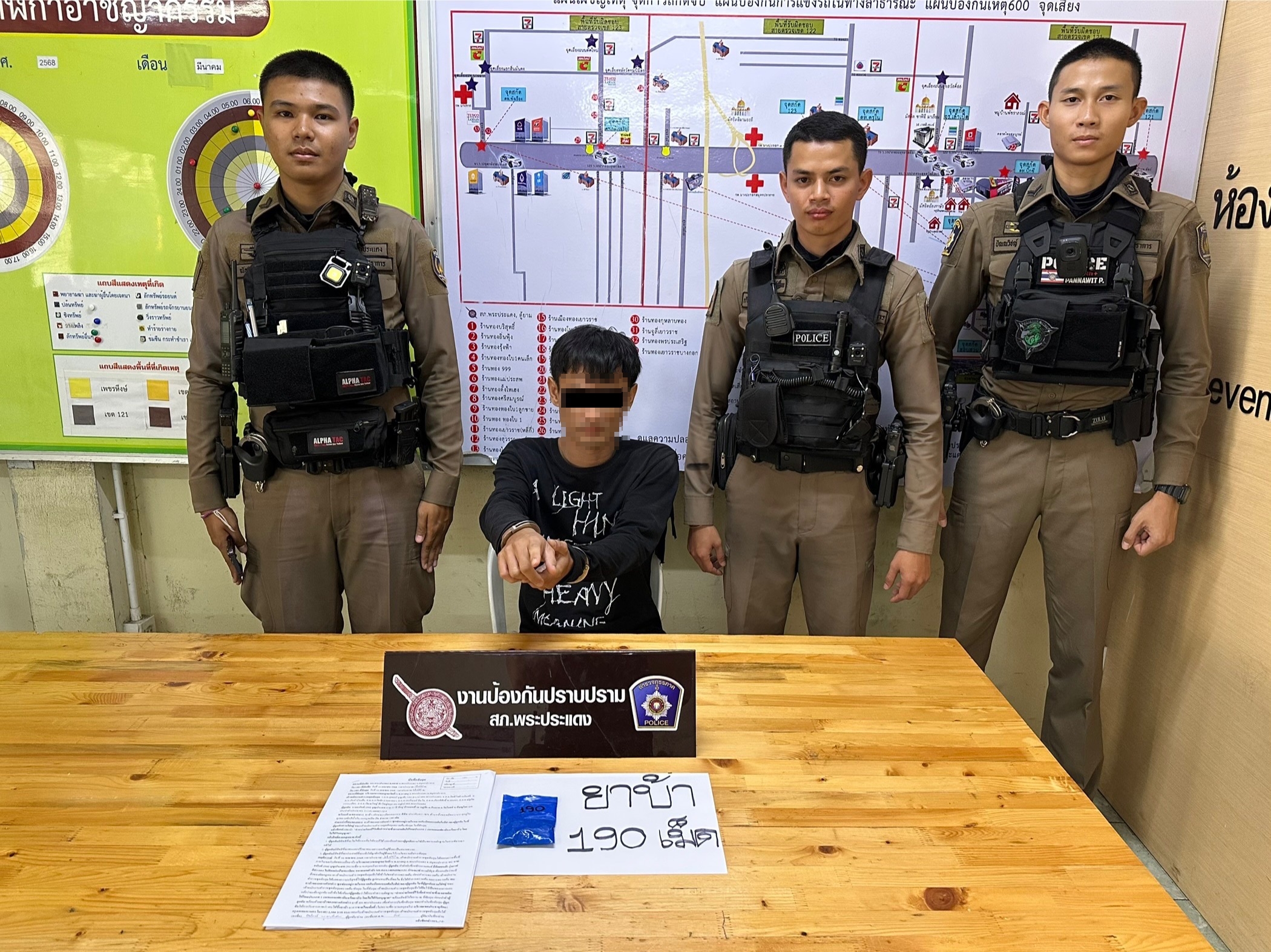 ขับรถไม่ติดทะเบียนตรวจสอบพบ ยาบ้า 190 เม็ด