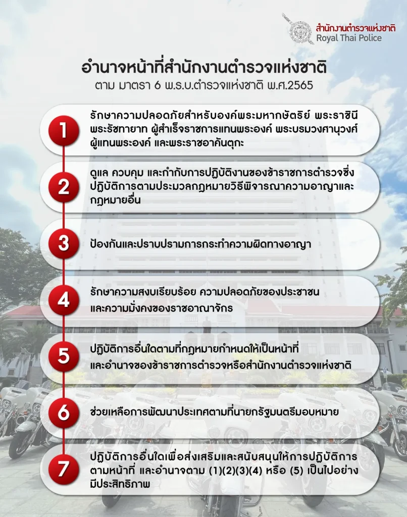 4. ปฏิบัติการอื่นใดตามที่กฎหมายกำหนดให้เป็นหน้าที่ของตำรวจหรือสำนักงานตำรวจแห่งชาติ